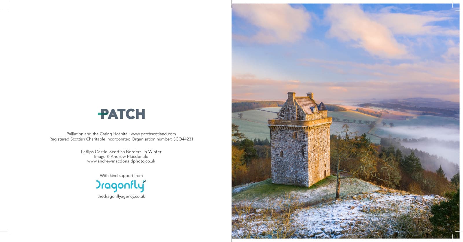 This year’s card will have special appeal to many people. The atmospheric image of Fatlips Castle in the Scottish Borders was captured by talented Ancrum photographer, Andrew Macdonald.