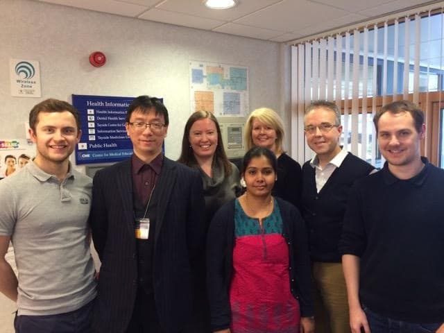 Sarah Mills (3rd from left) with the Chronic Pain research team in the Population Health Sciences department.
