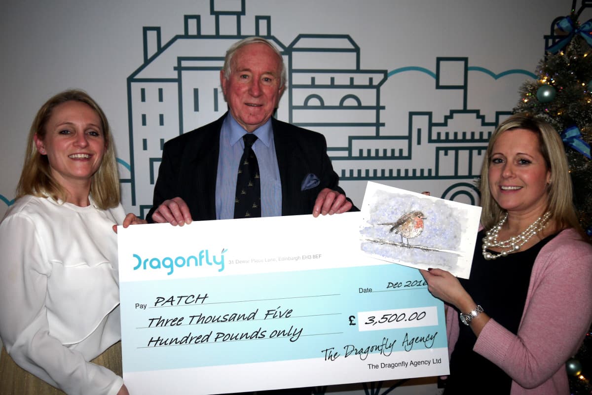 News release – 14 December 2016 – Scottish charity PATCH (Palliation and the Caring Hospital) has been filled with festive cheer following two generous donations totaling £5,000 from an Edinburgh based print consultant, The Dragonfly Agency.