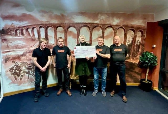 A total of £1,100 was raised with £550 donated to each organisation. Glider band leader, Alan Oliver said, ‘I and the other boys in the band are pleased to support these two worthy causes’
